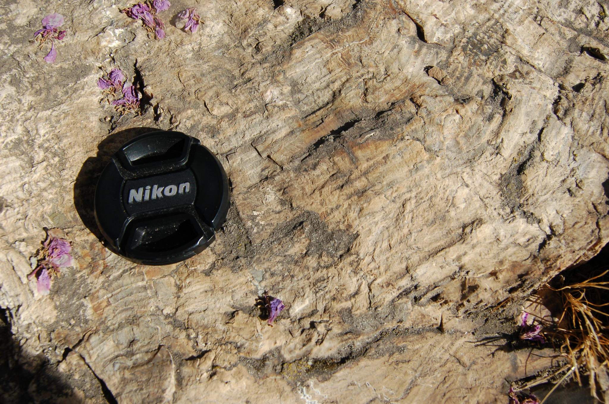 "Monday Geophoto: cross section of top of log, closeup. Lens cap is 52 mm."